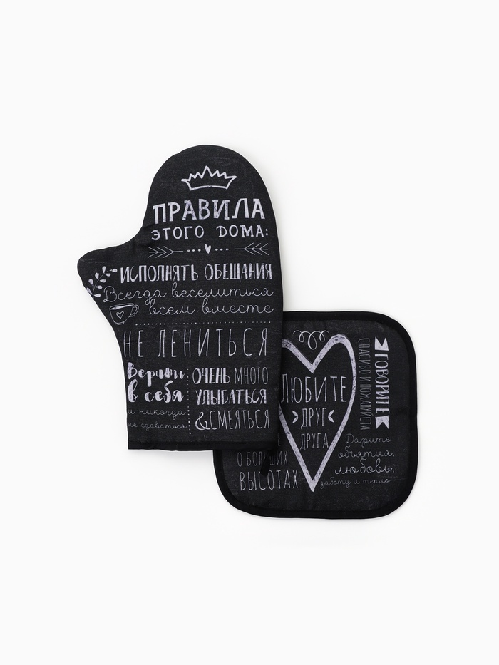 Кухонный набор «Этель. Правила дома»: варежка-прихватка 20×28 см, прихватка 19×19 см