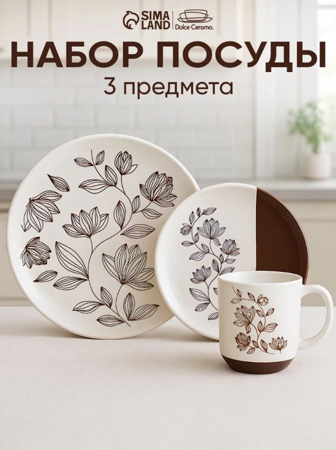 Набор посуды «Цветочная поляна», 3 предмета, плоские тарелки