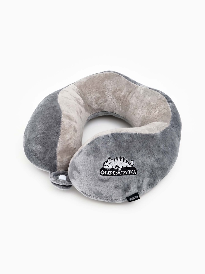 Подушка для путешествий бархатная формовая "Перезагрузка", серая