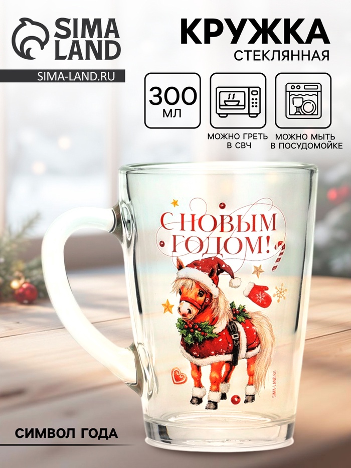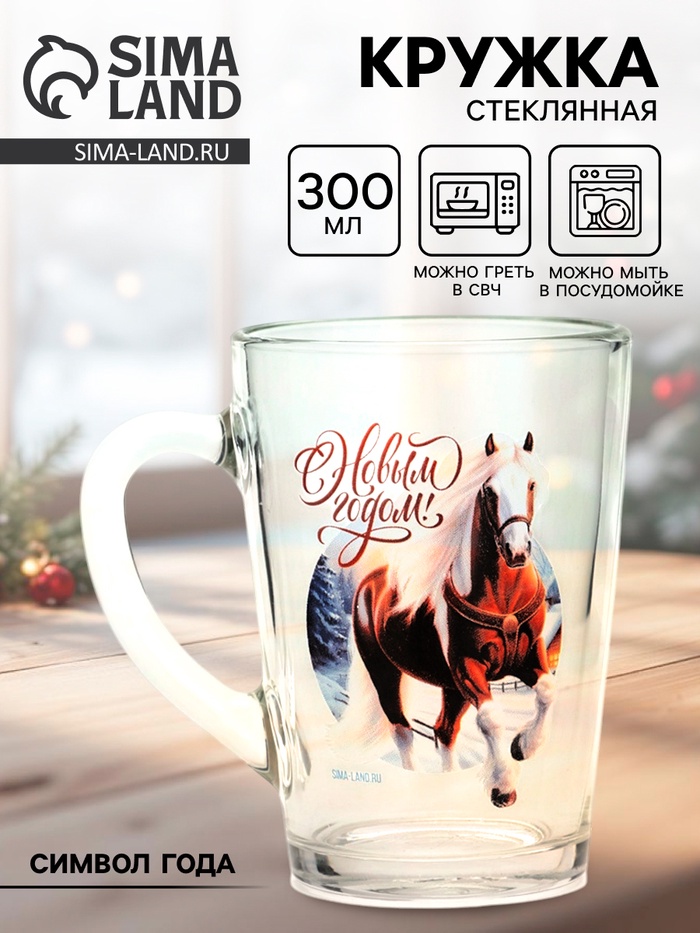 Кружка новогодняя стеклянная «С Новым годом. Лошадь», 300 мл