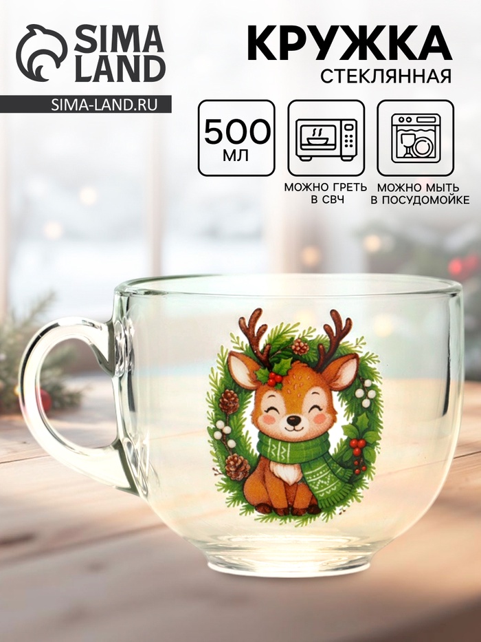 Кружка стеклянная новогодняя «Оленёнок», 500 мл
