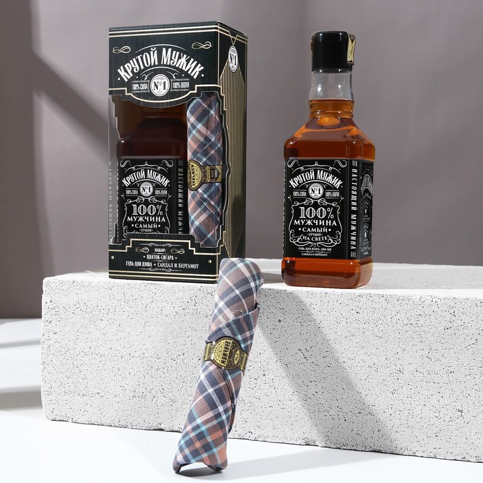 Набор «Крутому мужчине»: гель для душа во флаконе виски 250 мл, аромат сандал и бергамот, платок в форме сигары