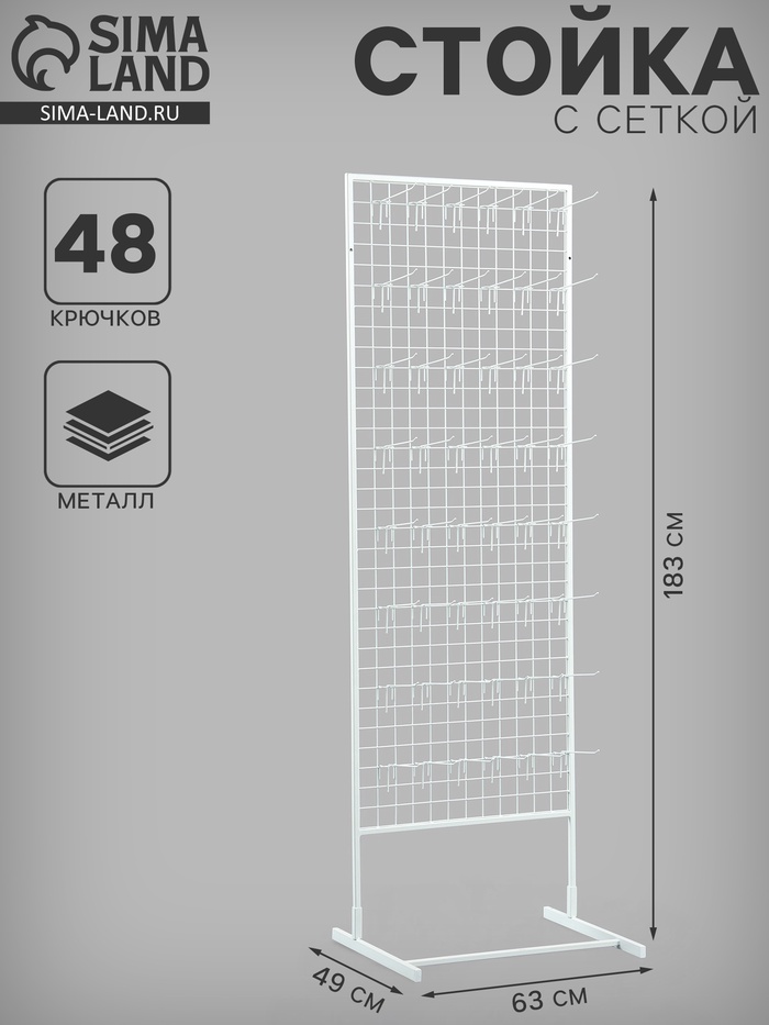 Стойка с сеткой односторонняя, в комплекте 48 крючков для семян, 63×49×183 см, белая