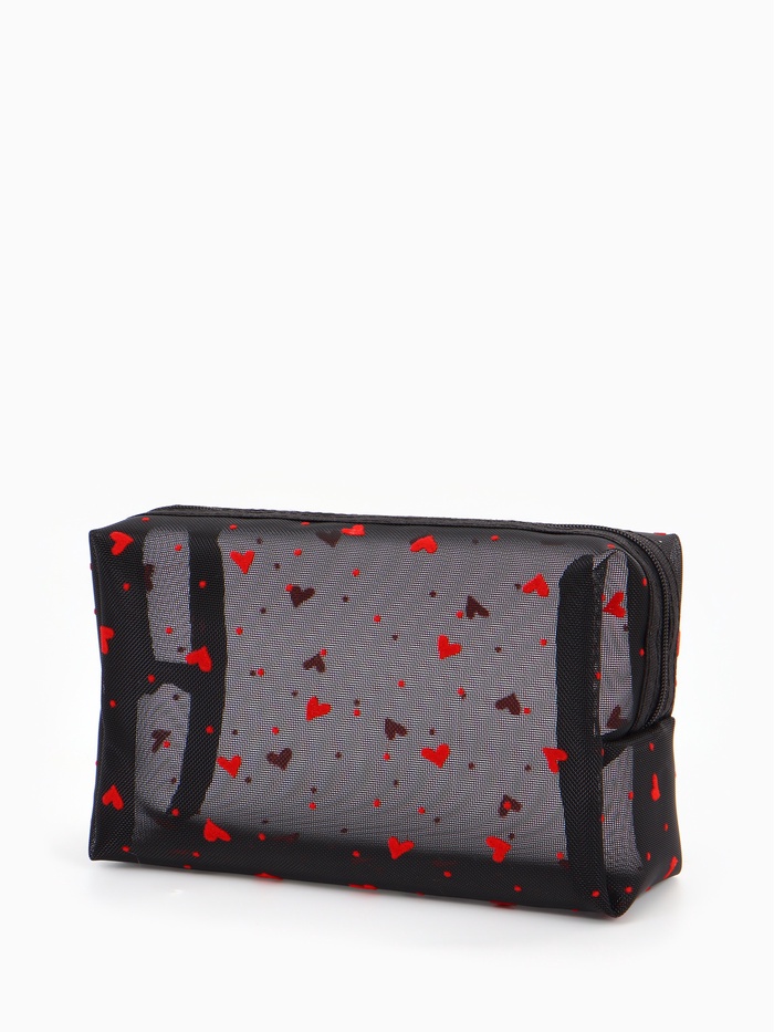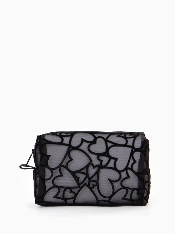 Косметичка дор Сердца, сетка 17*6,5*13,5, отд на молнии, черный