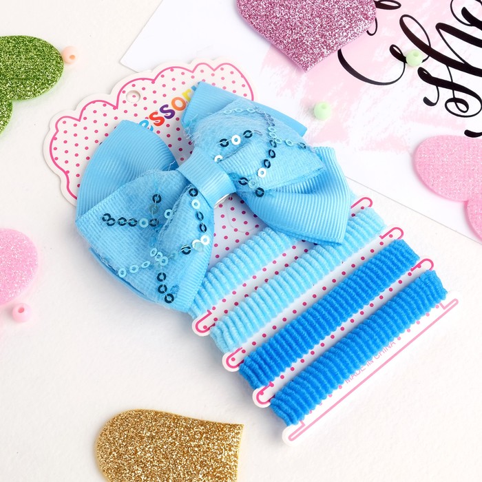 Набор для волос "Малютка" (4 резинки, 1 зажим) пайетки голубой