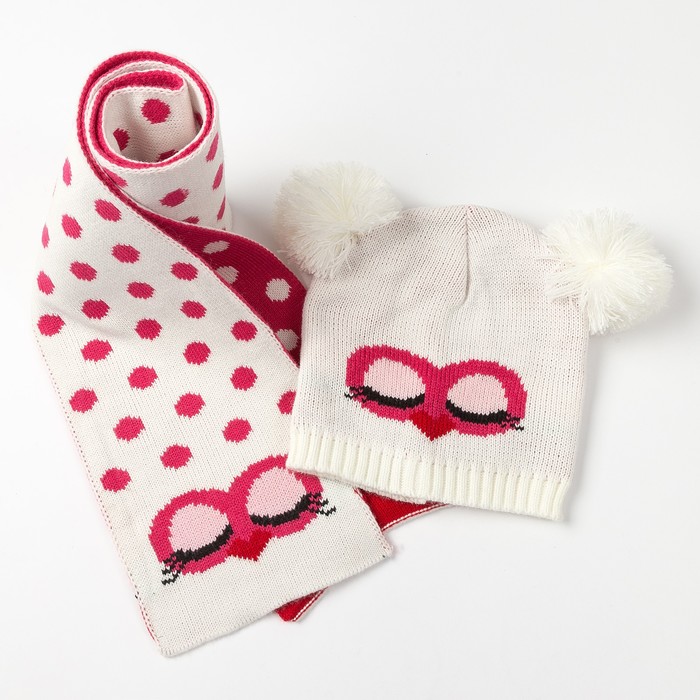 Комплект детский (шапка, шарф) MINAKU "Мордашка", вид 2, размер 52-54, цвет белый