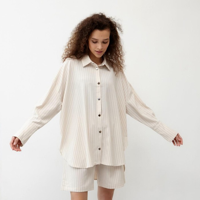 Комплект женский (рубашка, шорты) MINAKU: Casual Collection цвет бежевый, р-р 44