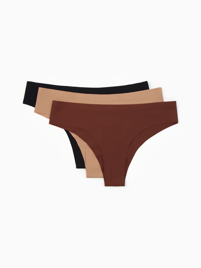 Трусы женские бикини бесшовные MINAKU, набор 3 шт., размер 44 (M), цвет коричневый, чёрный, бежевый