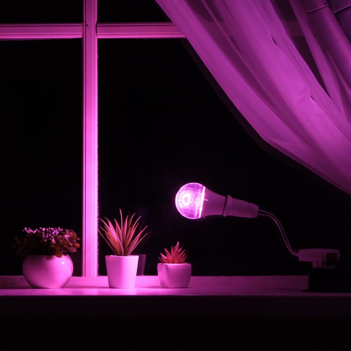 Фитосветильник для растений, 15 Вт, 12 мкмоль/с, провод 1.7 метра, с выключателем, липучка на окно