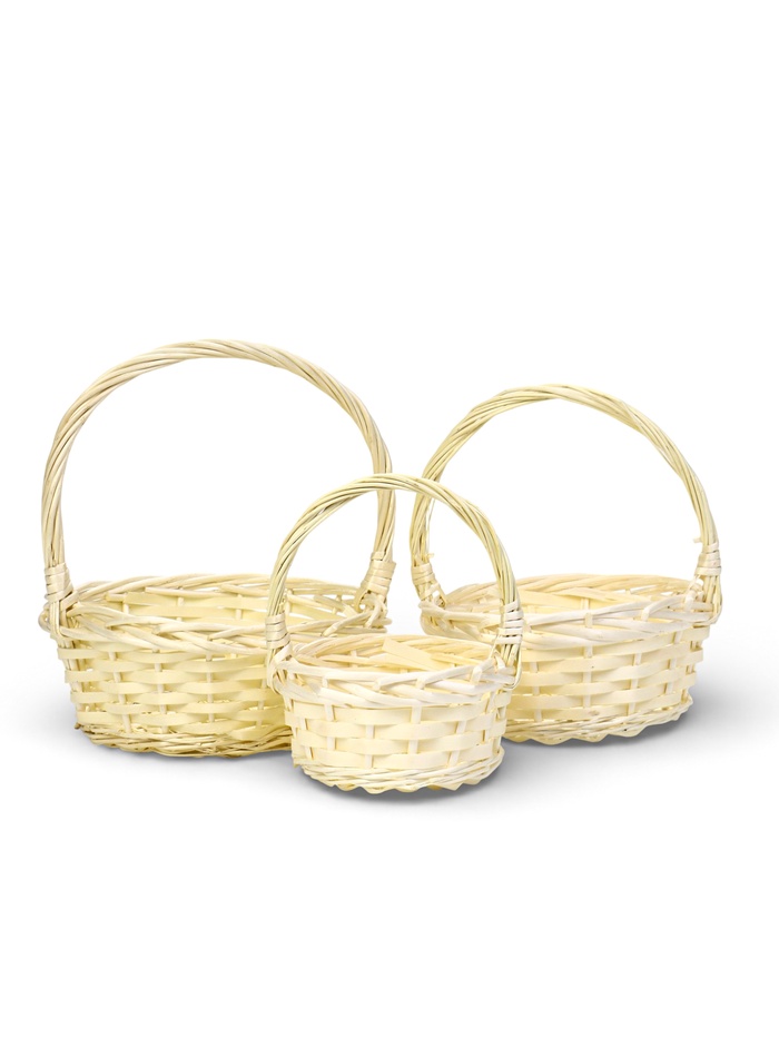 Корзина плетёная для хранения Rama, с ручкой, бежевая, набор 3 шт.