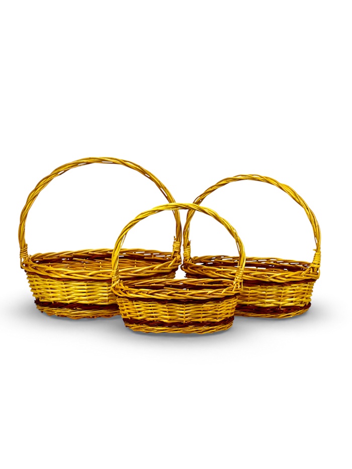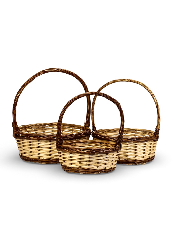 Корзина плетёная для хранения Vento, с ручкой, коричневая, набор 3 шт.