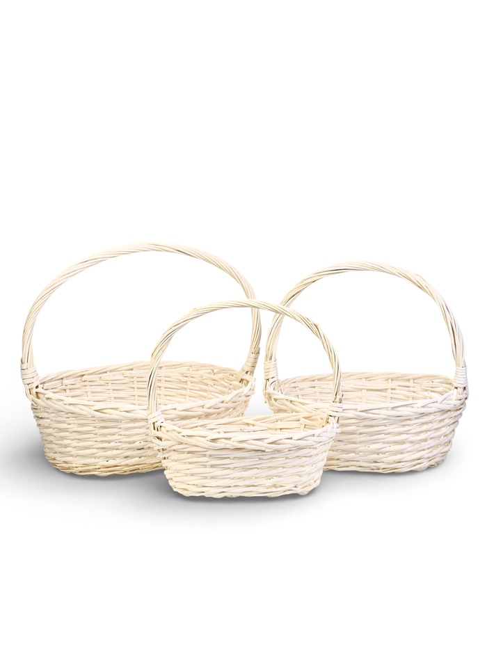 Корзина плетёная для хранения Tenda, с ручкой, белая, набор 3 шт.