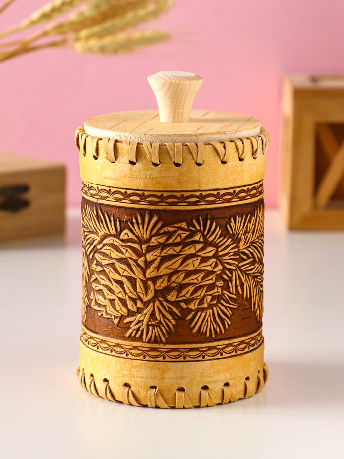 Туес шитый "Шишки" , D8смхH(с хватком)14см, береста