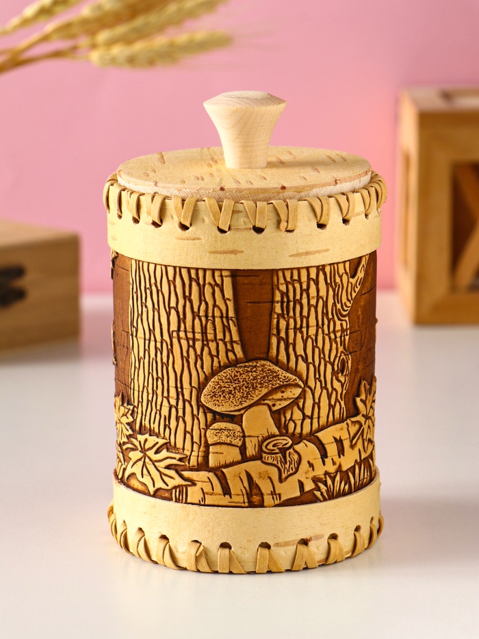 Туес с кантами "Лесная красавица" D10смхH(с хватком)17см, береста