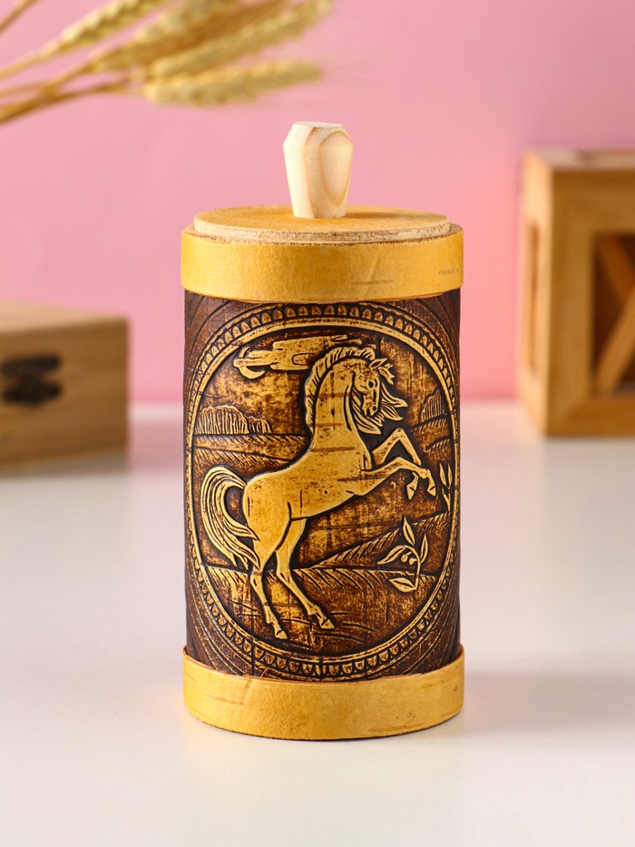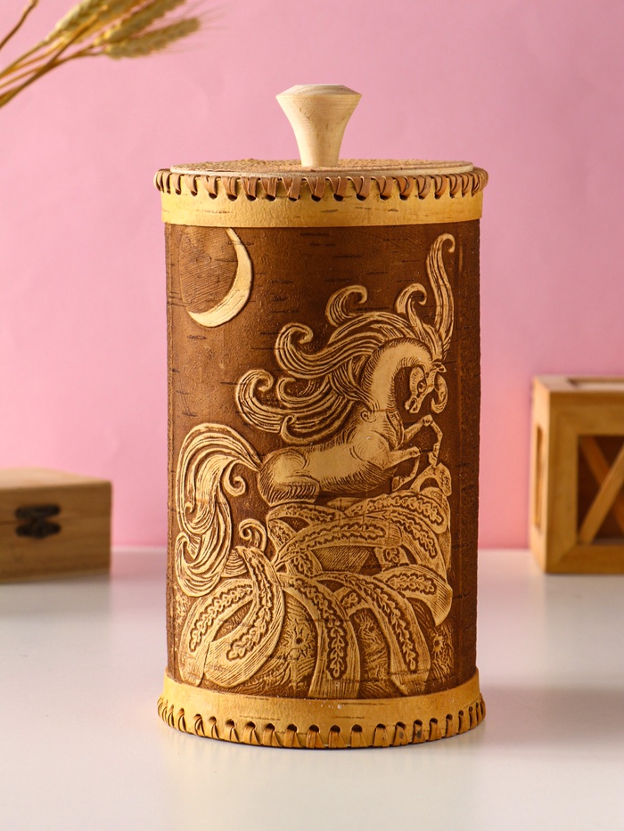 Туес "Конь вороной" d8, высота с хватком 15,5см, береста
