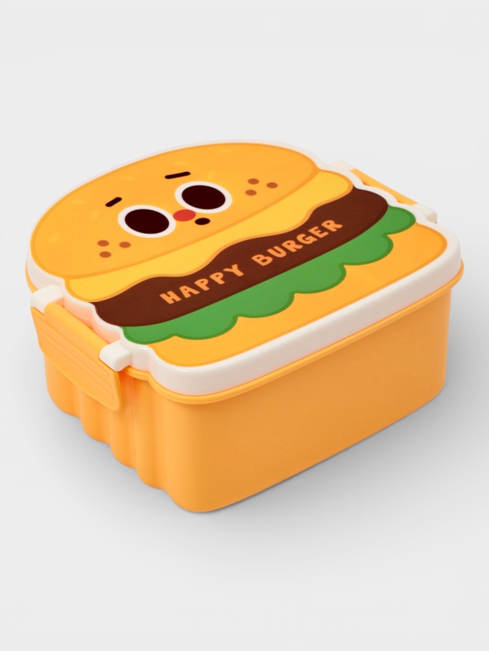 Ланч - бокс, контейнер для еды Доляна «Счастливый бургер», 3 ячейки, с ложкой и вилкой, 17.5×15.5×8 см, пластик, жёлтый
