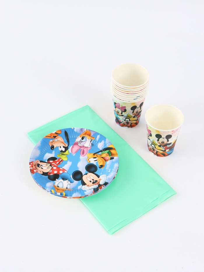 Посуда одноразовая бумажная на 10 персон: стаканы, тарелки, скатерть, Друзья