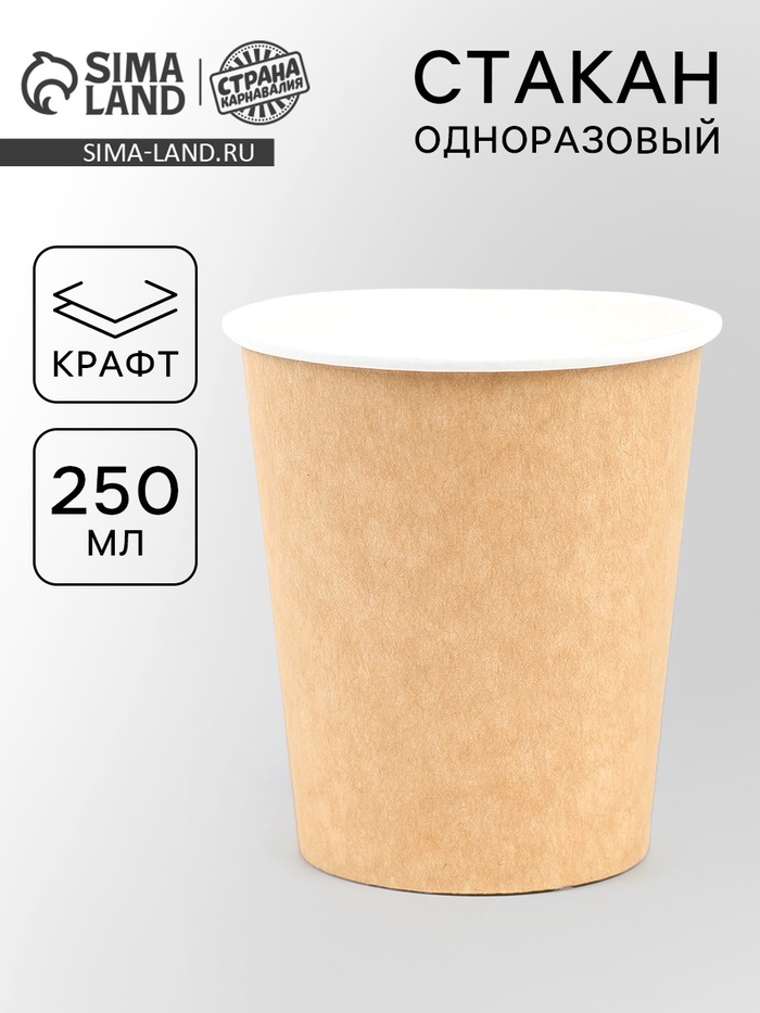 Стакан одноразовый бумажный «Действуй», под крафт, 250 мл