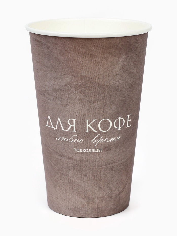 Стакан одноразовый бумажный для кофе «Любое время подходящее», графит, 400 мл