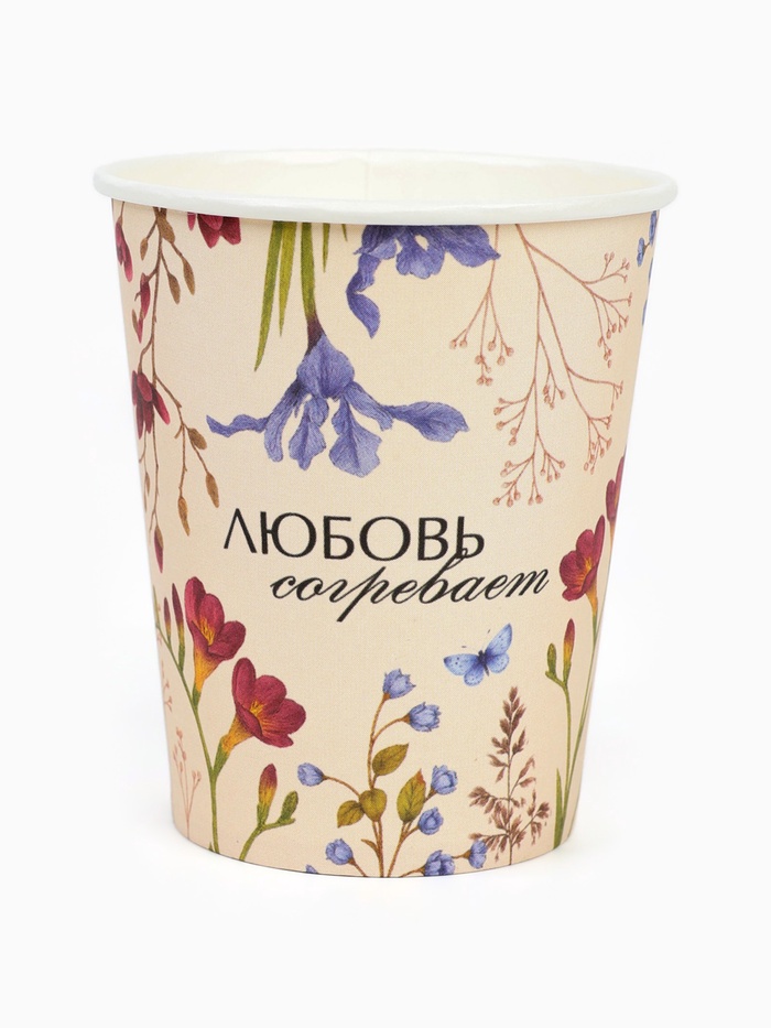 Стакан одноразовый бумажный «Любовь согревает», цветы, 250 мл