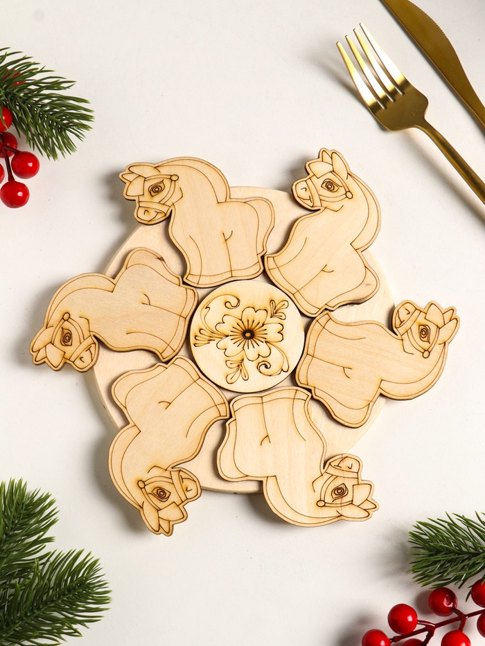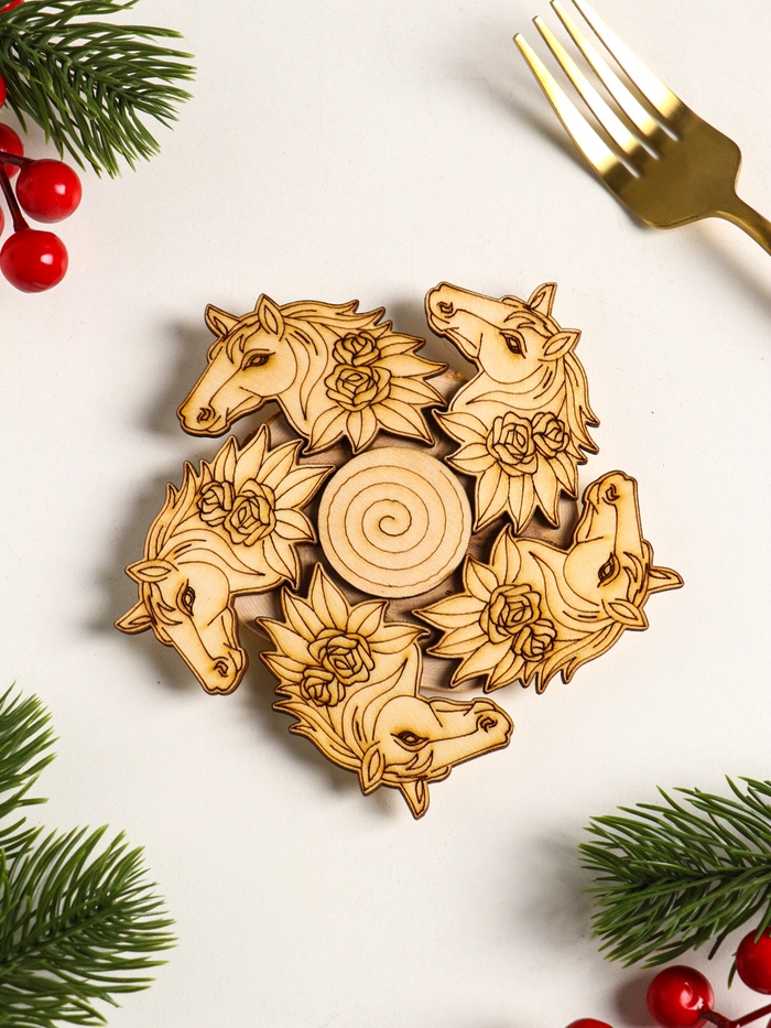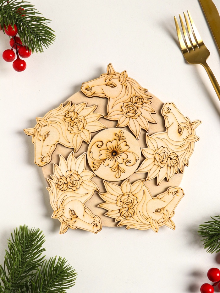 Подставка под горячее «Лошадь в цветах», 11 см, можжевельник
