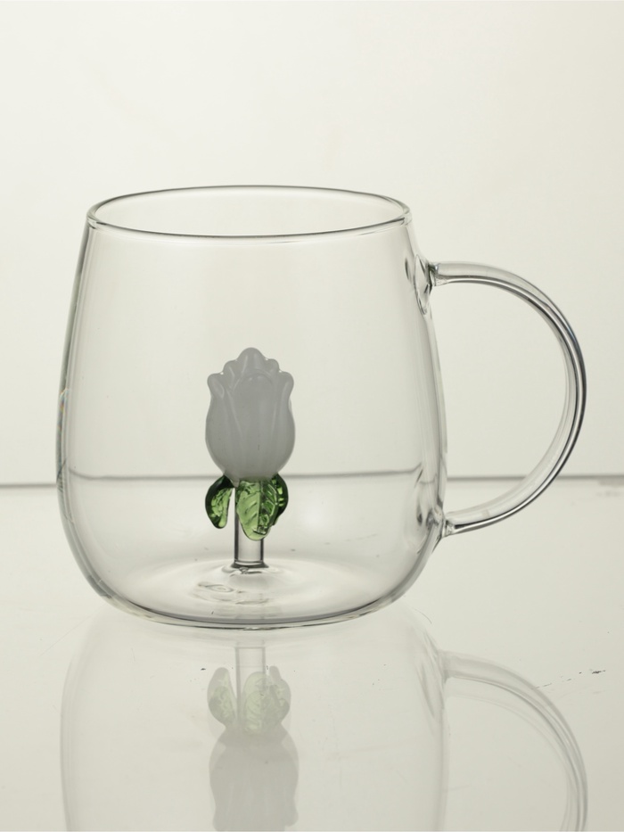 Кружка стеклянная "Розочка" белая, 400 мл, 9х12,5х9 см