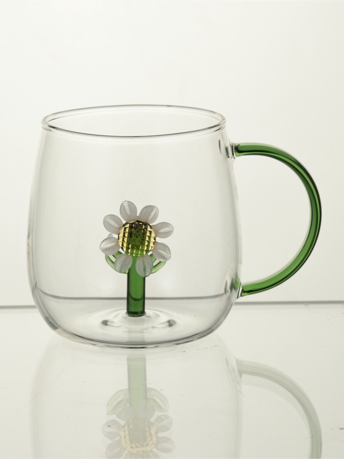 Кружка стеклянная "Ромашка" 400 мл, зеленая ручка, 9х12,5х9 см