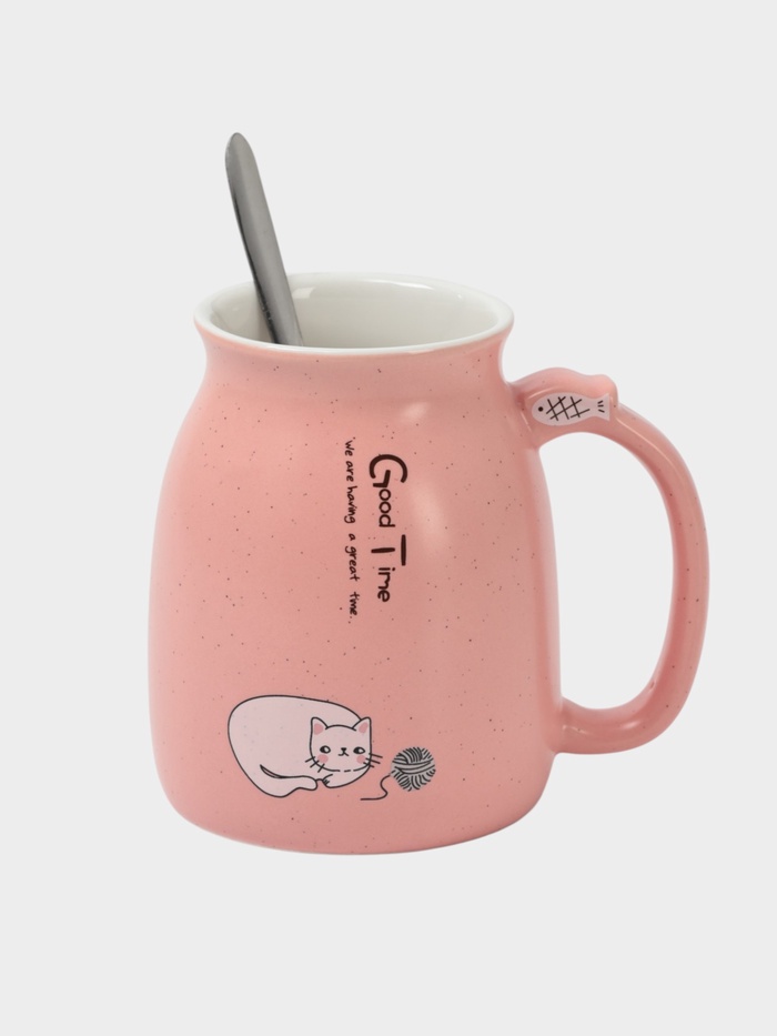 УЦЕНКА Кружка с деревянной крышкой и ложкой "Котик" 500 мл , цвета и рисунок МИКС