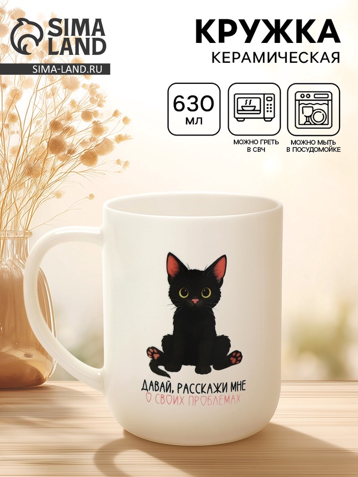 Кружка чайная керамическая «Кот психолог», 630 мл