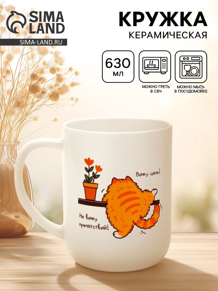 Кружка чайная керамическая «Рыжий кот», 630 мл