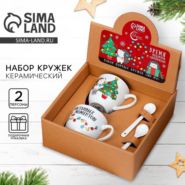Набор «Ежик», кружка 180 мл. 2 шт., ложка 2 шт.