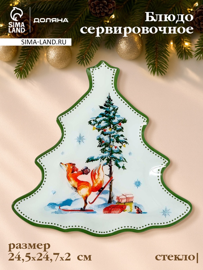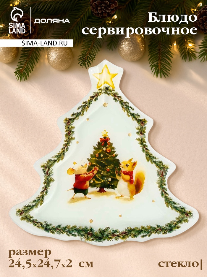 Блюдо сервировочное ёлочка "Новогоднее зверята" 24,5х24,7х2 см