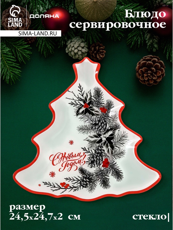 Блюдо сервировочное ёлочка "С Новым Годом" 24,5х24,7х2 см