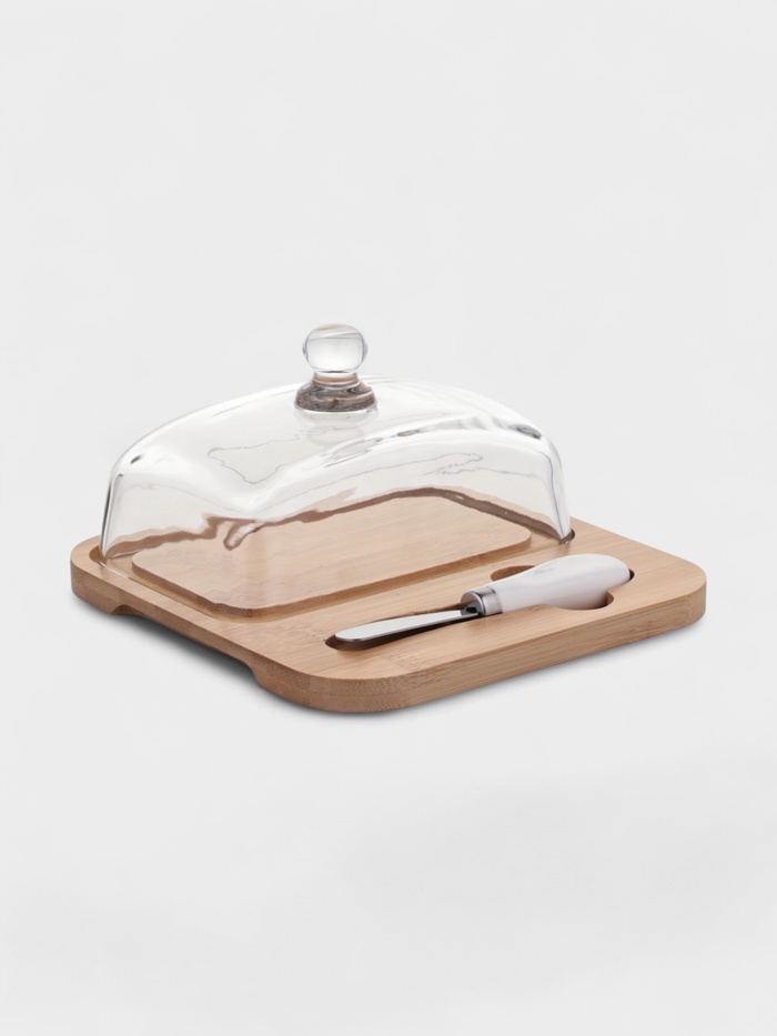 Масленка с бамбуковой крышкой-подставкой и ножом, 17,4х13х6,5 см
