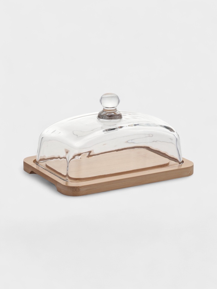 Масленка на бамбуковой подставке, 17.8х13х10 см