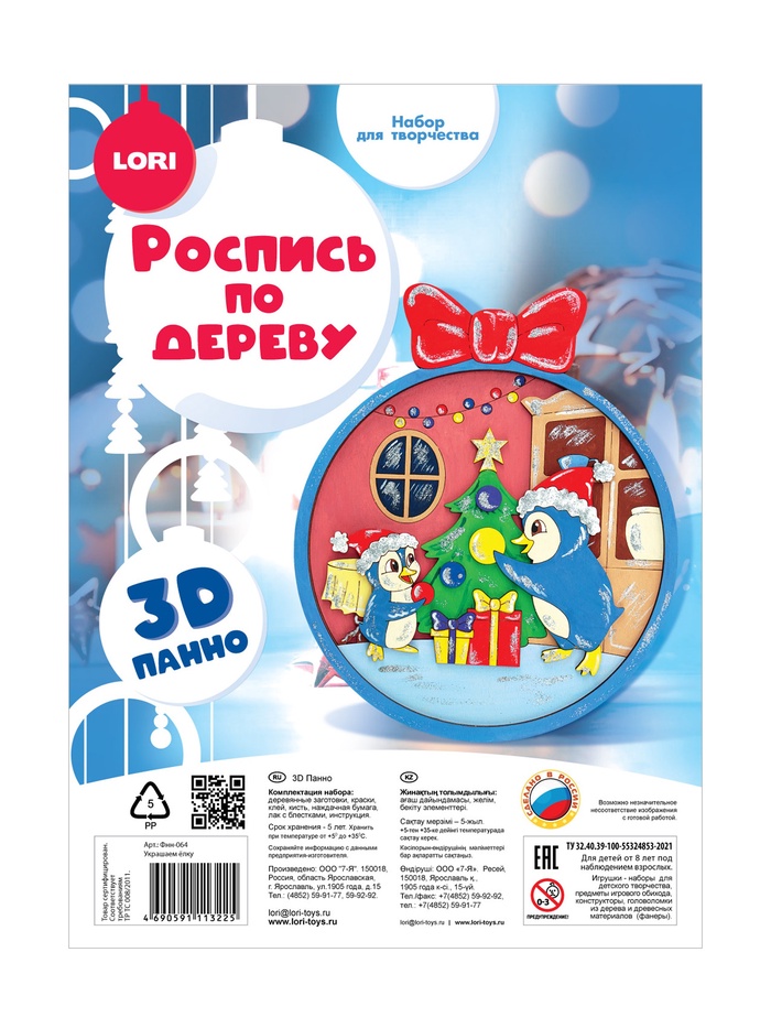 Роспись по дереву, панно 3D «Украшаем ёлку», набор для творчества