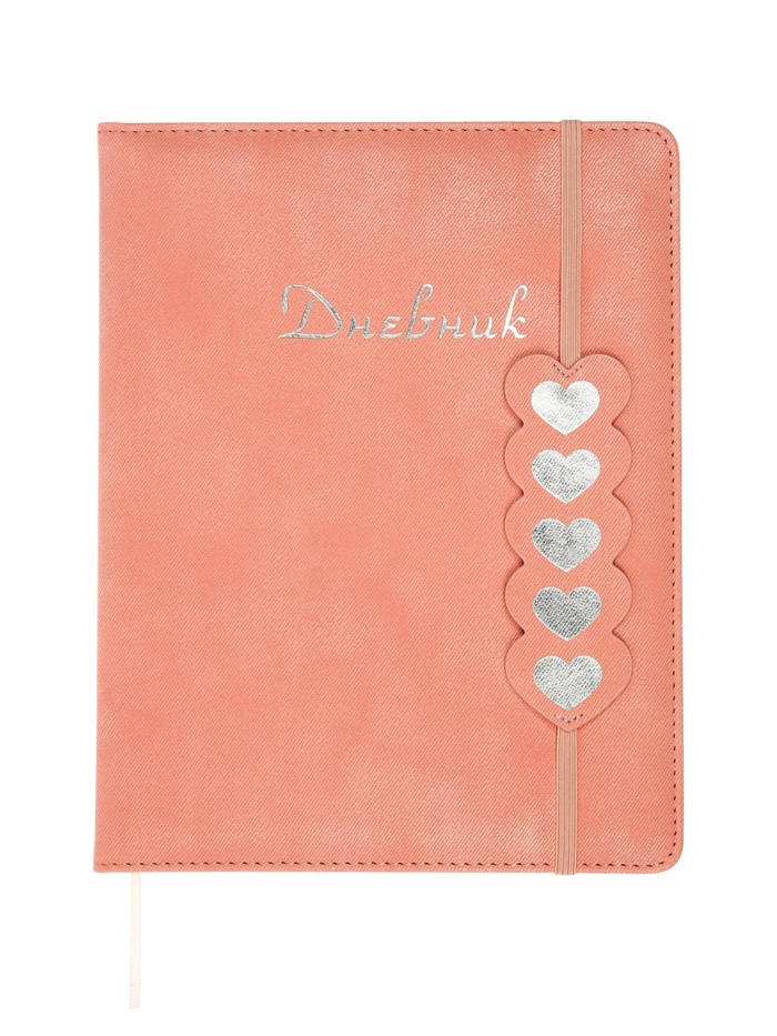 Дневник школьный 1-11 класс, лассе, обложка искуственная кожа персиковая, Сердечки