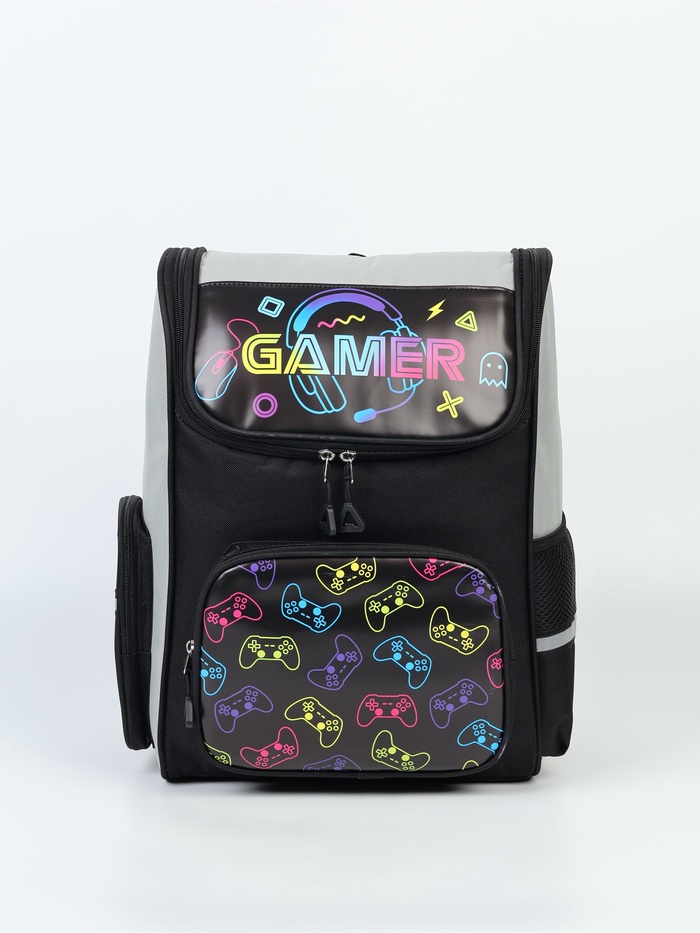 Ранец с эргономичной спинкой квадратный с доп. элементами "Gamer"