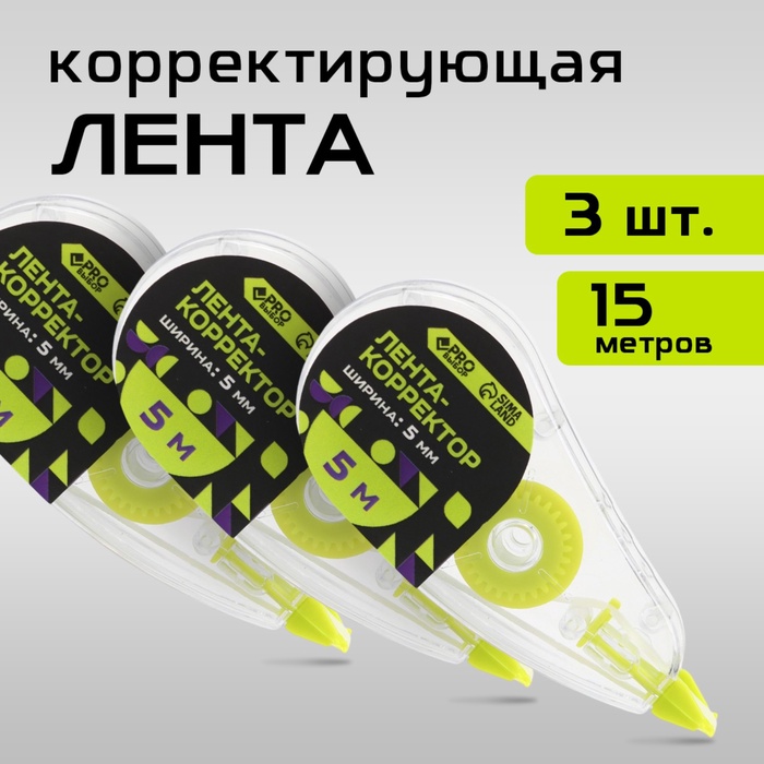 Набор из 3х шт Корректор-лента 5м х 5мм PROвыбор "Черный неон"