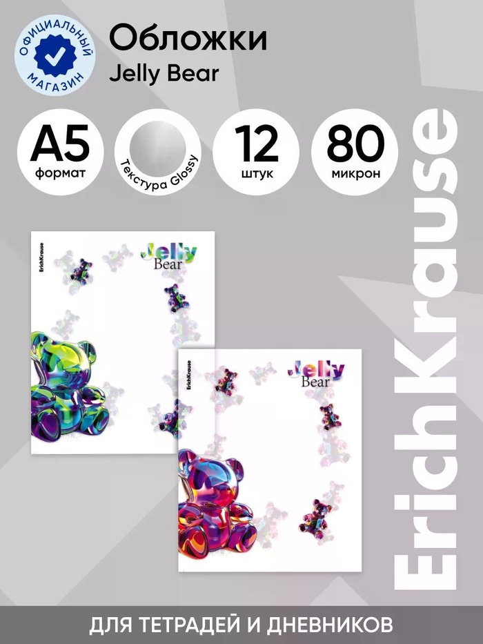 Набор пластиковых обложек для тетрадей ErichKrause Jelly Bear, 212×347 мм, 80 мкм, МИКС