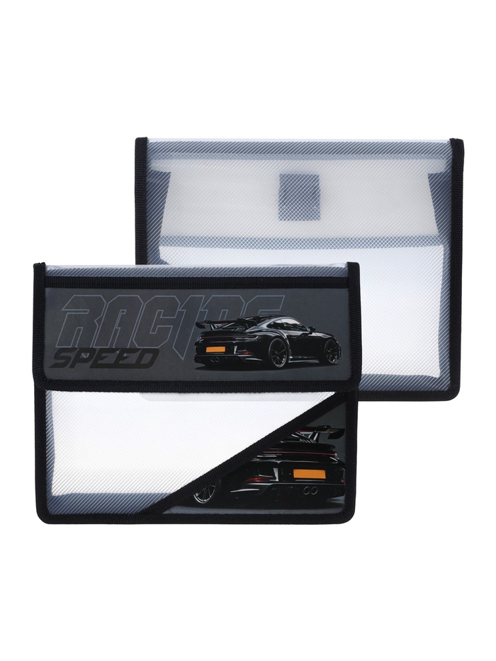 Папка д/тетрадей А5 клапан на липучке пластик "Черная тачка", 1 отделение 230*190*50