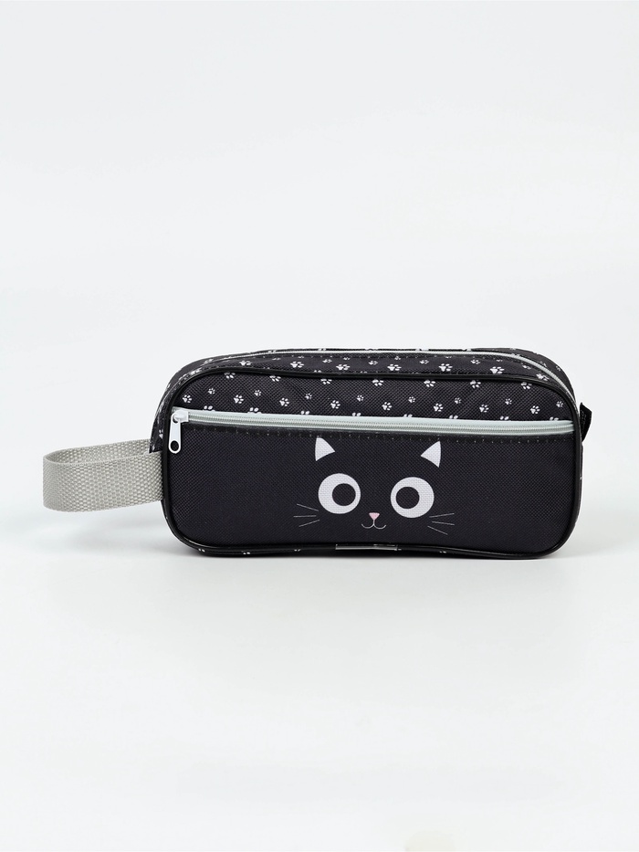 Пенал школьный, 2 секции, 12.5×20.5×4 см «Котик черный»