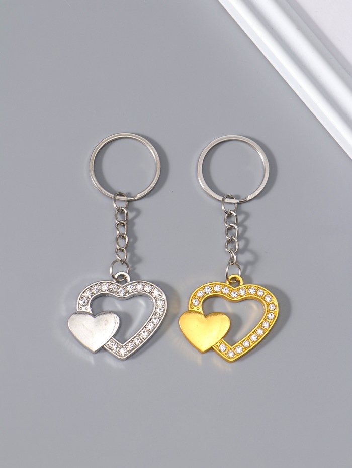 Брелок для ключей на кольце «Двойное сердце», металл, стразы, 3.3×3.7 см, МИКС