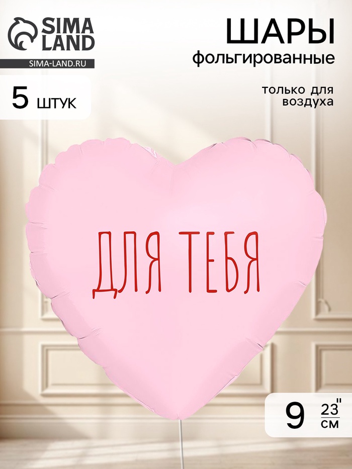 Воздушный шар фольгированный 9" сердце "Для тебя" цвет красный, набор 5 штук