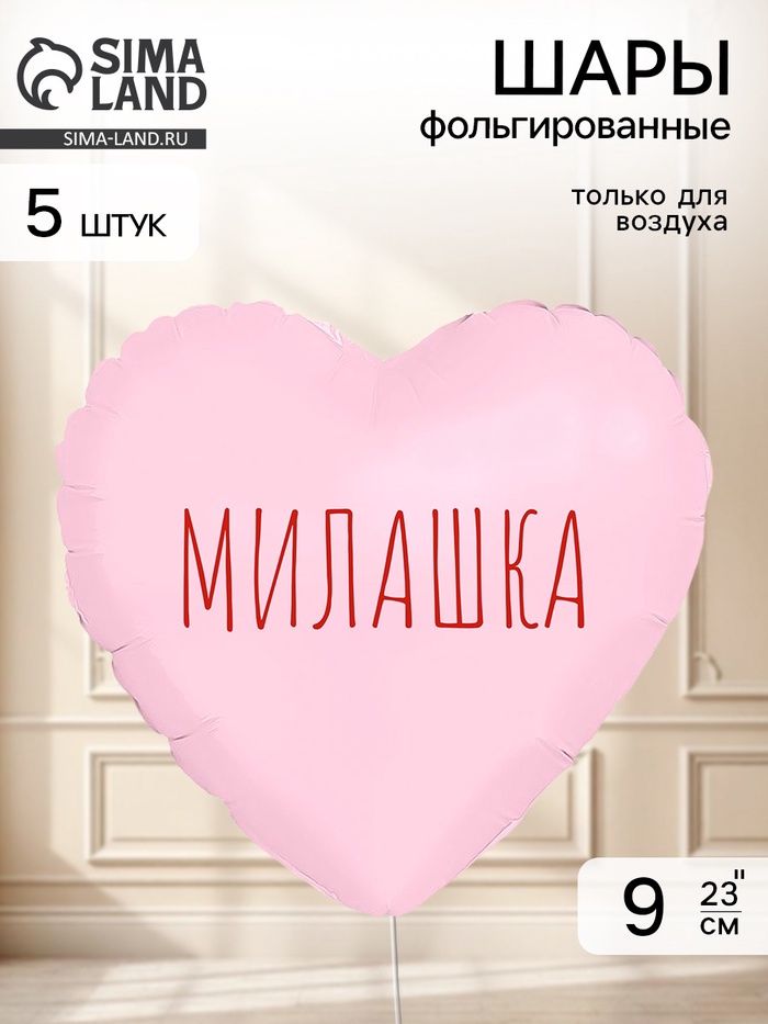 Воздушный шар фольгированный 9" сердце "Милашка" цвет красный, набор 5 штук