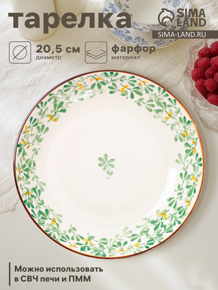 Тарелка «Гармония лепестков», d=20.5 см, фарфор, белая, зелёная
