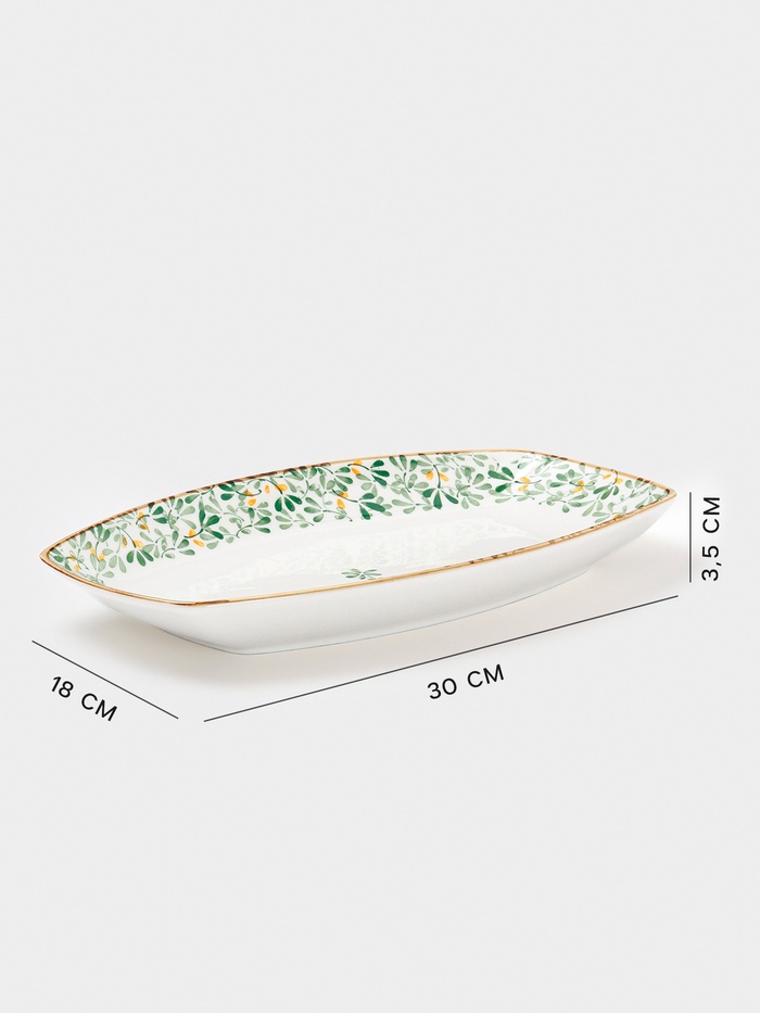 Блюдо сервировочное «Гармония лепестков», 30×18×3.5 см, фарфор, белое, зелёное