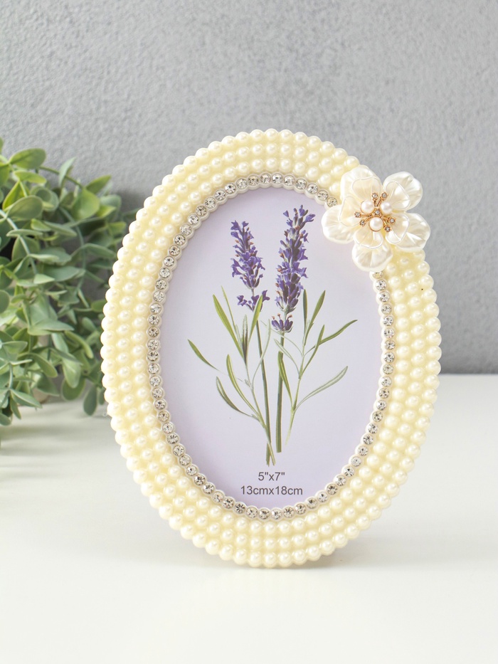 Фоторамка для фото 13×18 см «Белый жемчуг с цветком», овальная, пластик