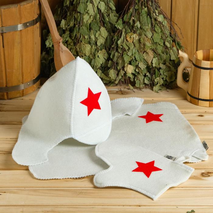 Набор для бани "Будёновец" шапка, коврик, рукавица