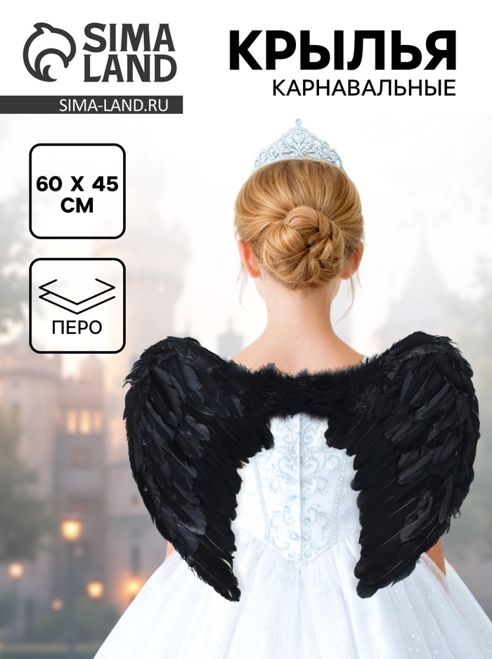 Крылья "Ангел" размер M, черный, 60*45 см, 1 шт.